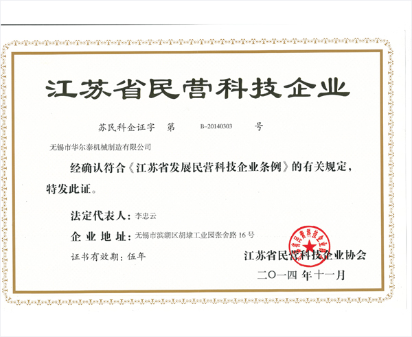 省民营科技企业证书